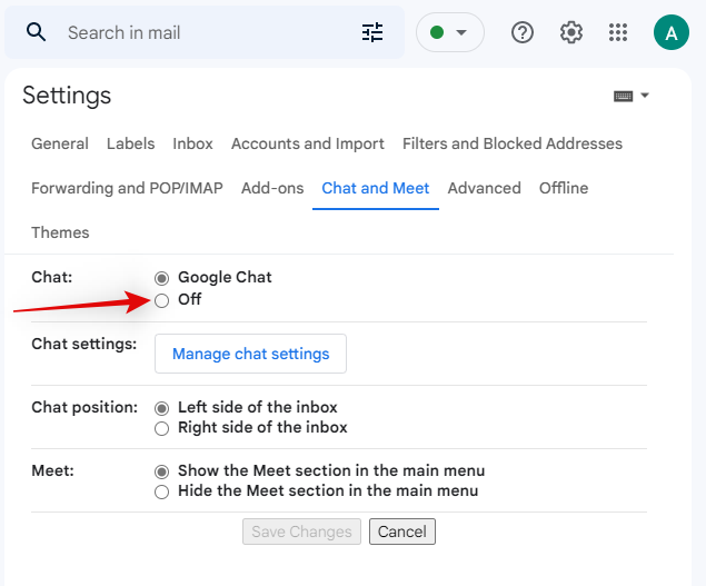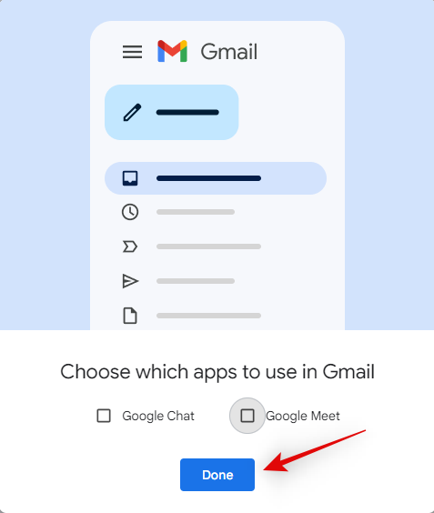 Uncheck the Google Chat and Google Meet boxes to disable the same in your Gmail.