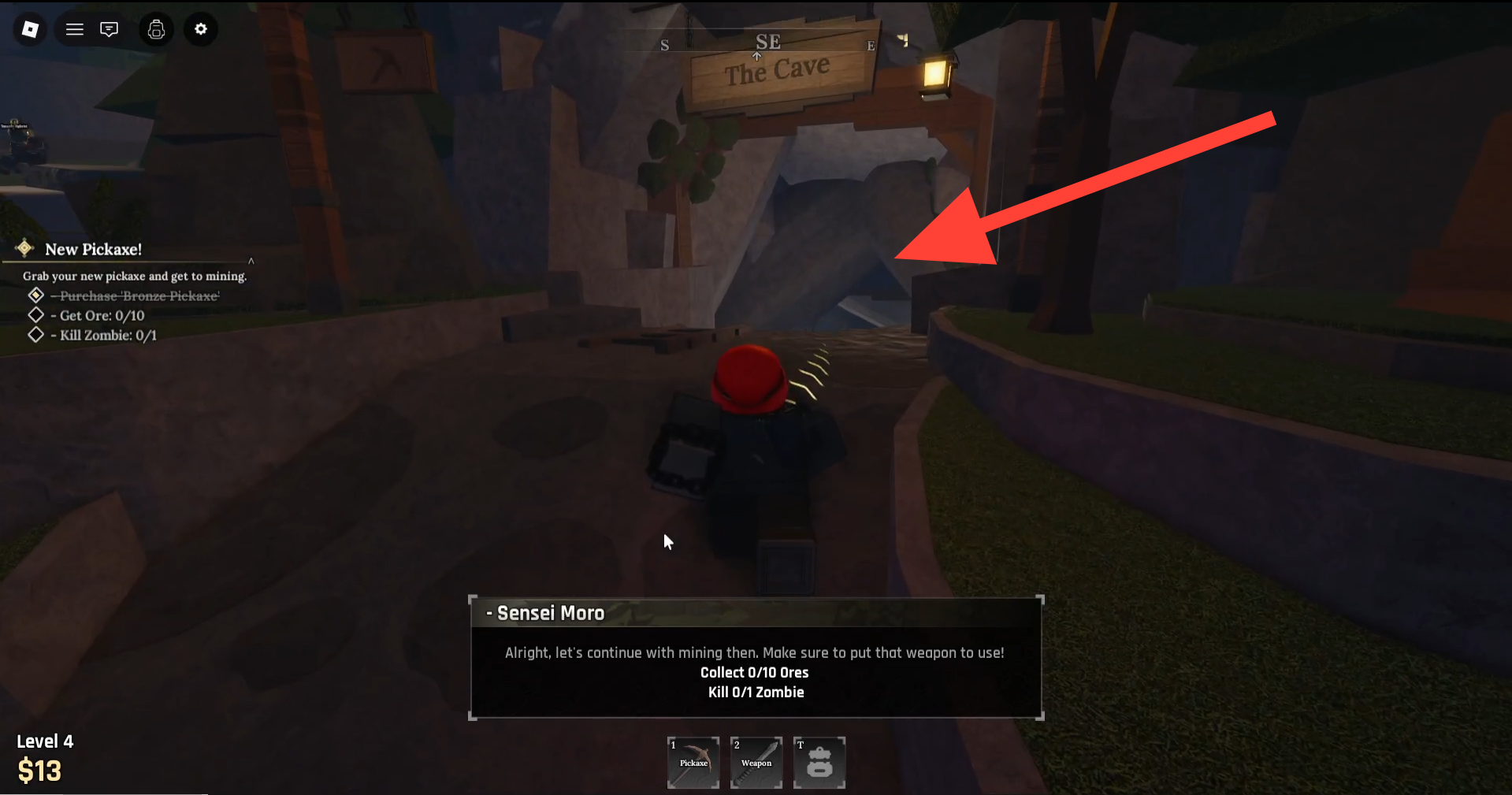 Locate a Zombie inside the cave and defeat it with your weapon to complete the objective.