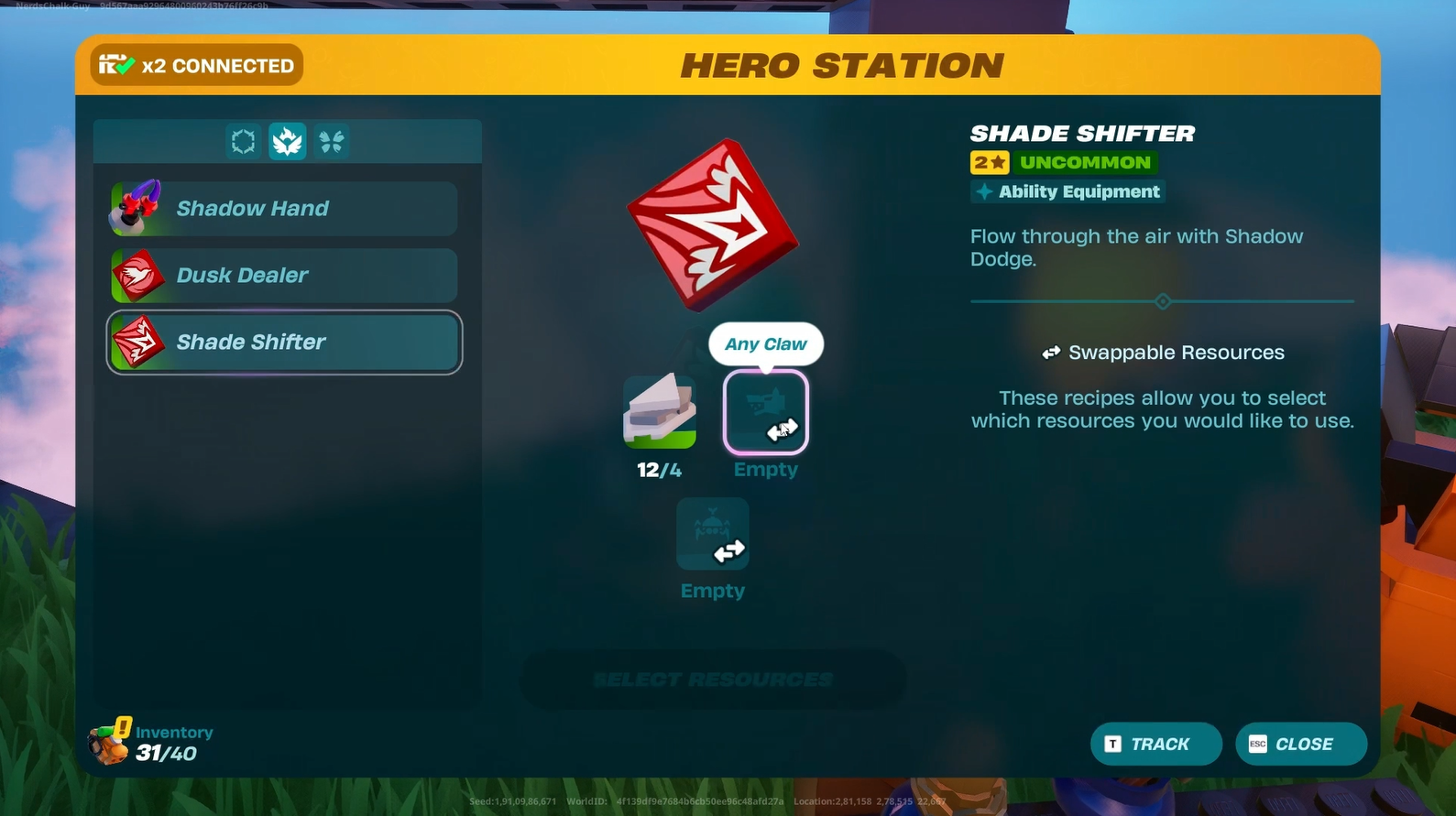 Go to the Hero Station and press E to interact with it.