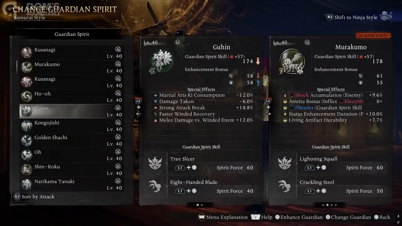 - You can equip one Guardian Spirit for each combat style in Nioh 3, so you can tailor Living Weapon setups separately for Samurai and Ninja.