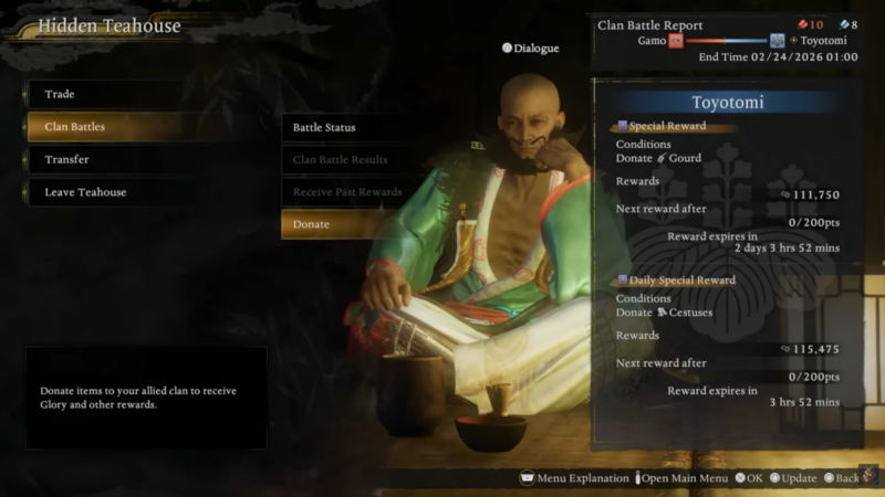 Clans in Nioh 3 operate on a weekly competitive structure. Every action that earns Glory adds to your personal contribution, which increases your clan favor. Higher favor translates into a better personal ranking within the clan and greater impact during clan wars.