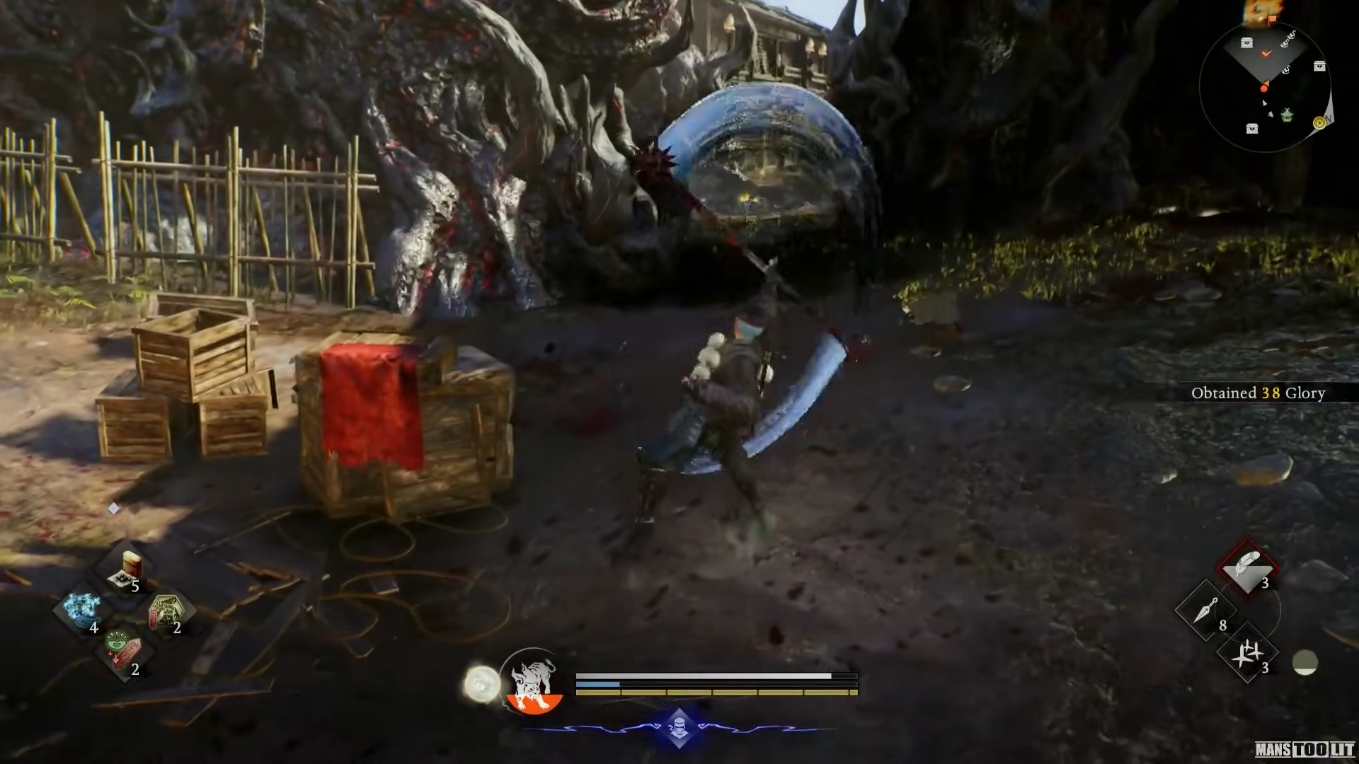 Repeat until you see a Splitstaff drop. Because the Bloodedge Demon can be re-engaged from its spawn, you can run attempts for better drops instead of waiting for the story to naturally widen the loot pool. Once the Splitstaff drops, equip it immediately to start building familiarity and unlock its martial arts.
