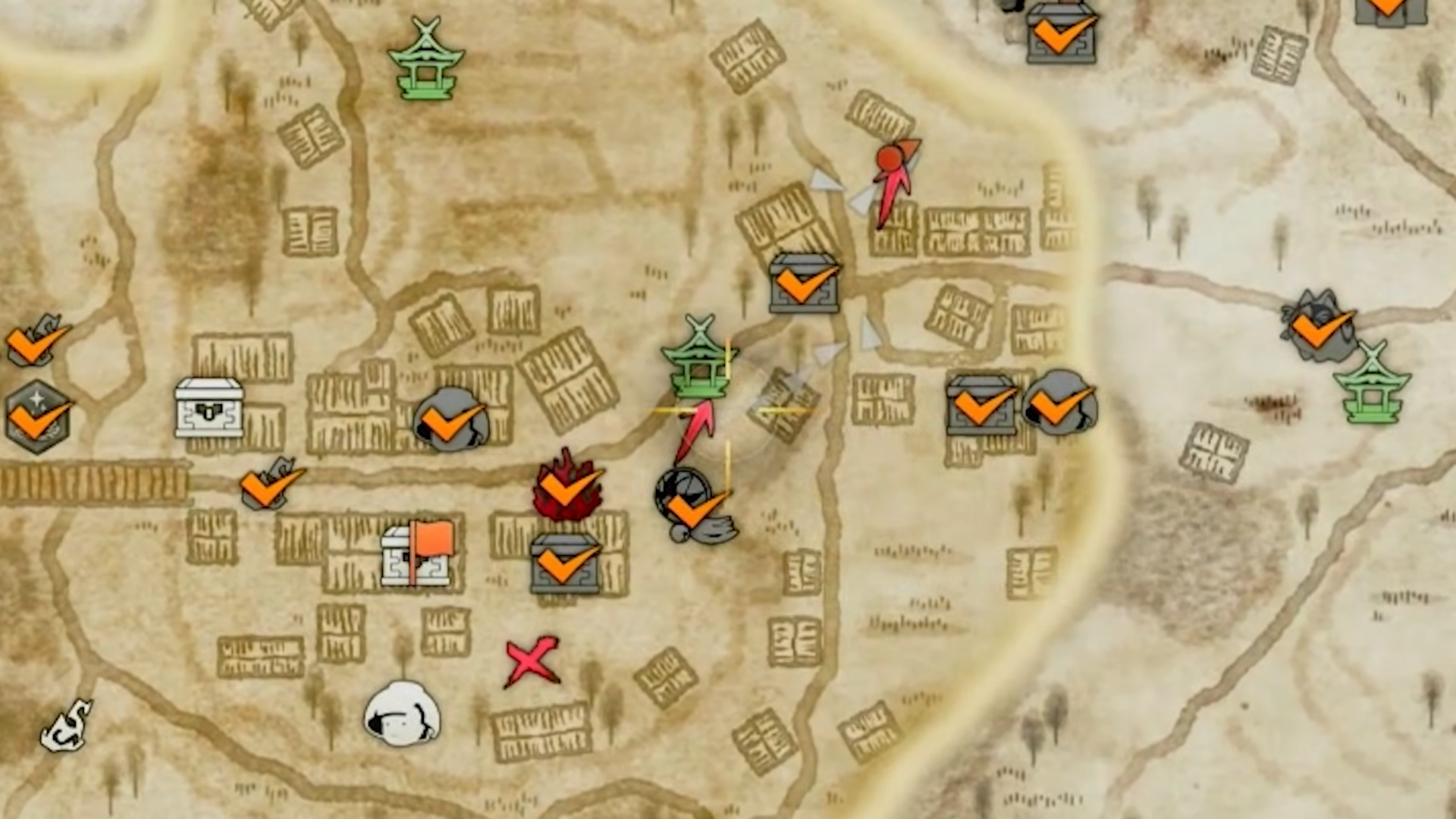 Trigger the tracking arrow by hunting down Revenants (the enemies summoned from red graves) and defeating them until the game marks the direction on your map with an arrow.