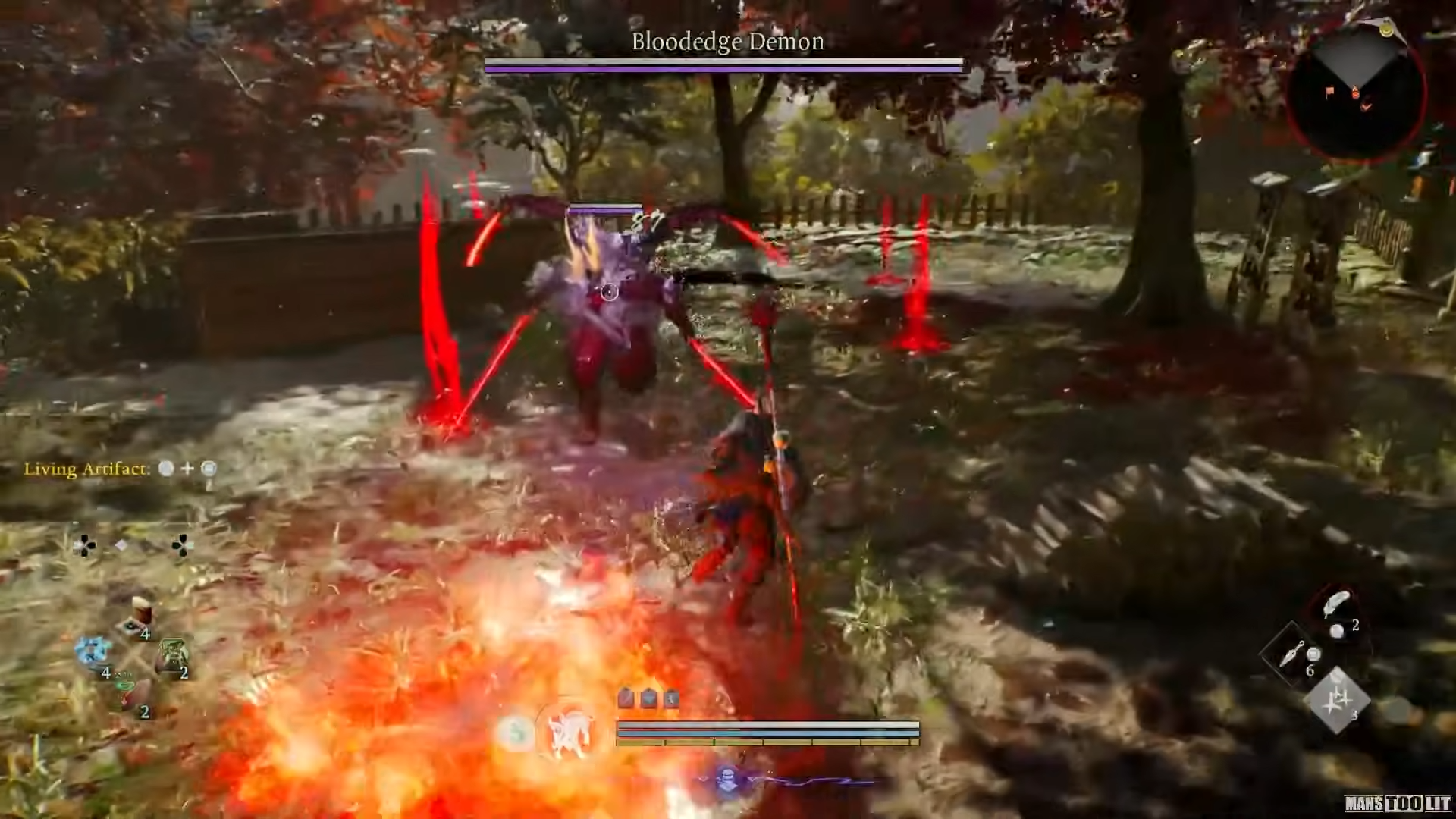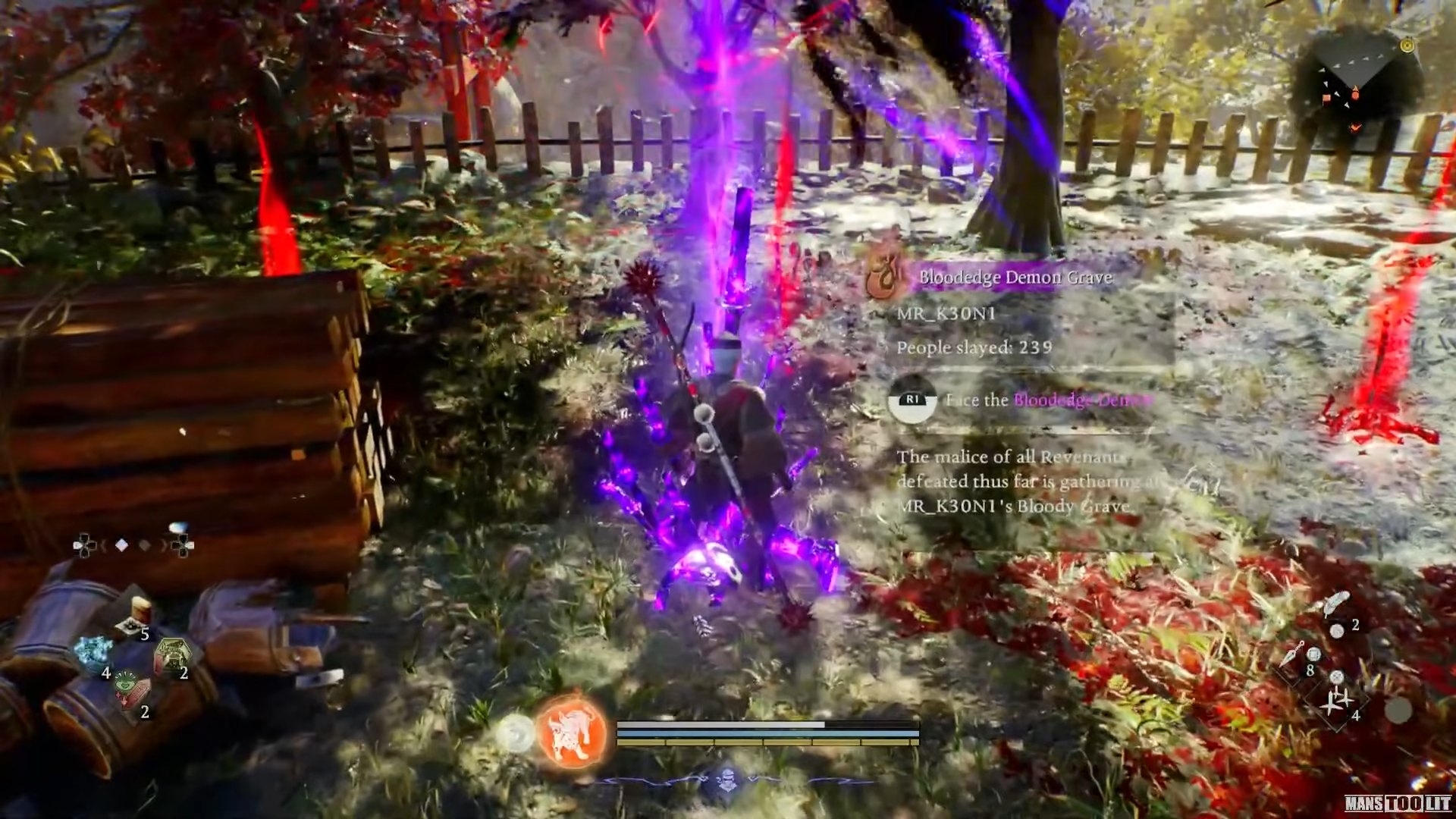 Bloodedge Demon is a unique enemy that can appear at different locations over time rather than being tied to one fixed boss arena. When it is available, defeating Revenants will mark an arrow on your map that points in the right direction, letting you follow the trail toward its spawn area.