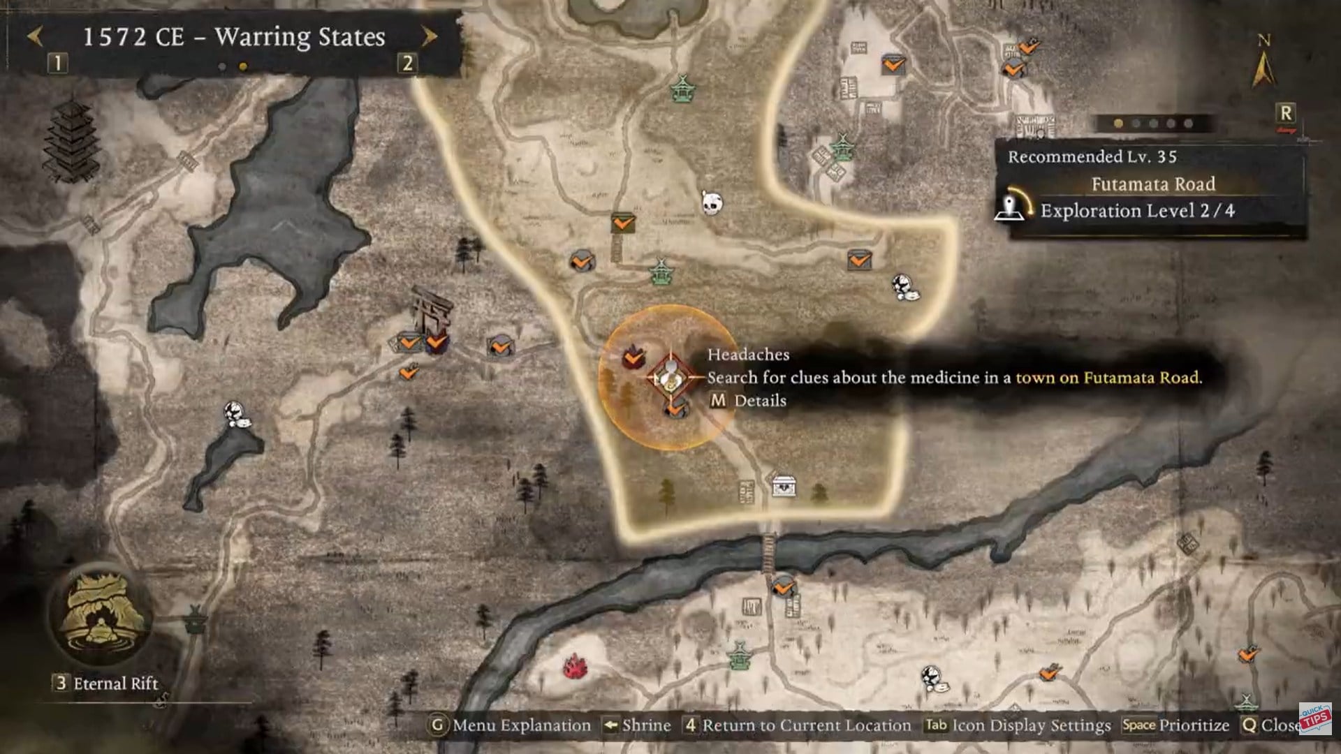 Locations of the Headaches myth quest in Nioh 3
