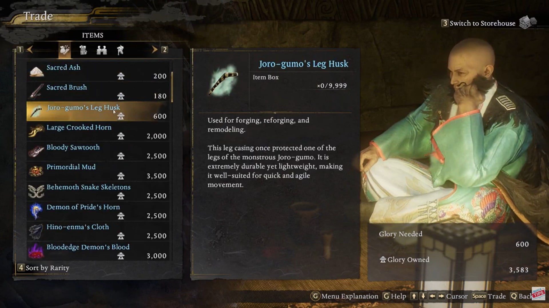 Nioh 3 Glory Farming and Spending Guide: Hidden Teahouse Store