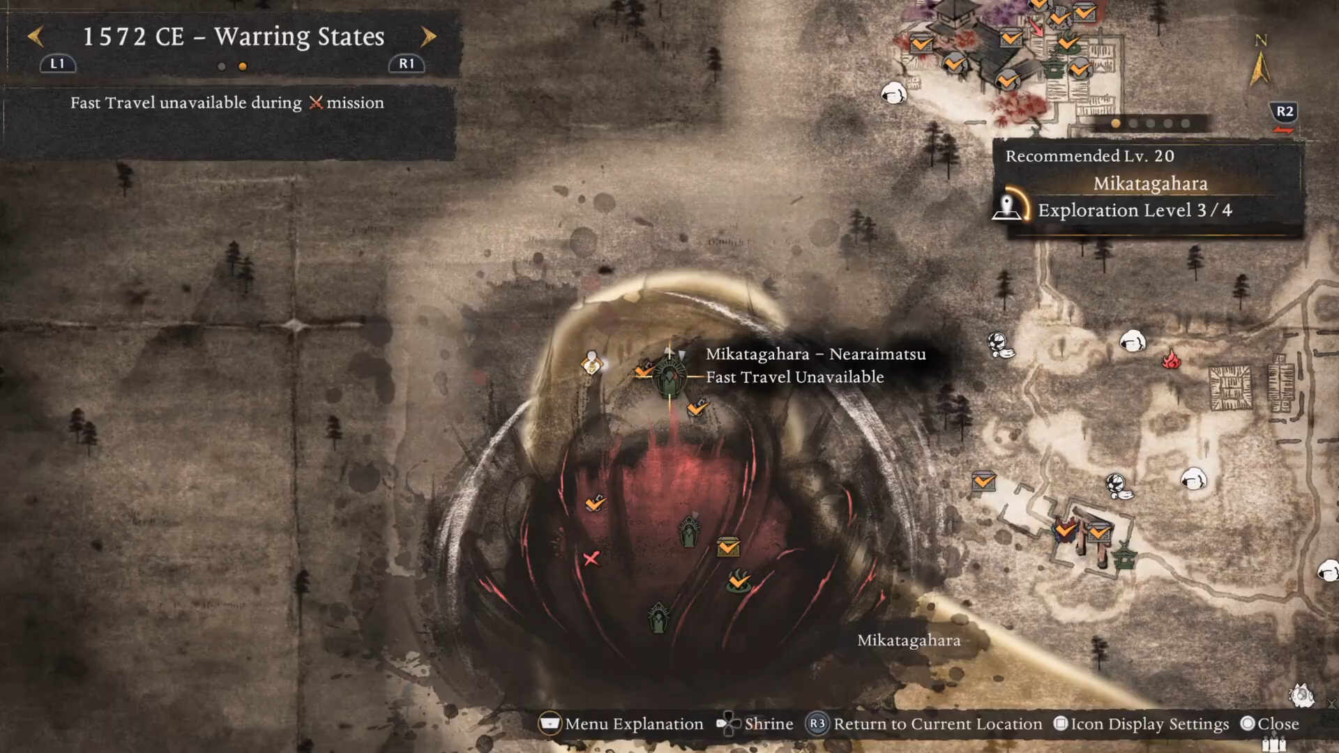 The “A Fiery Invasion” mission unfolds in the Mikatagahara region during The Battle of Mikatagahara story arc, a Warring States-era battlefield filled with Takeda camps, yokai ambushes, and Crucible events. You’ll navigate tents, hills, and fiery hazards leading to Yamagata Masakage first, then the Death Veil Crucible where Kosaka Masanobu awaits inside—often near a shrine or tent for quick boss access.