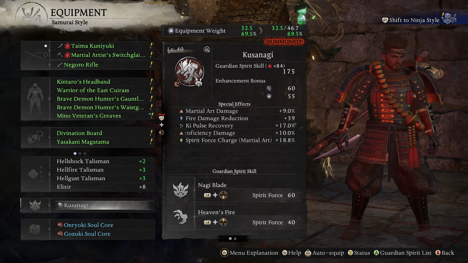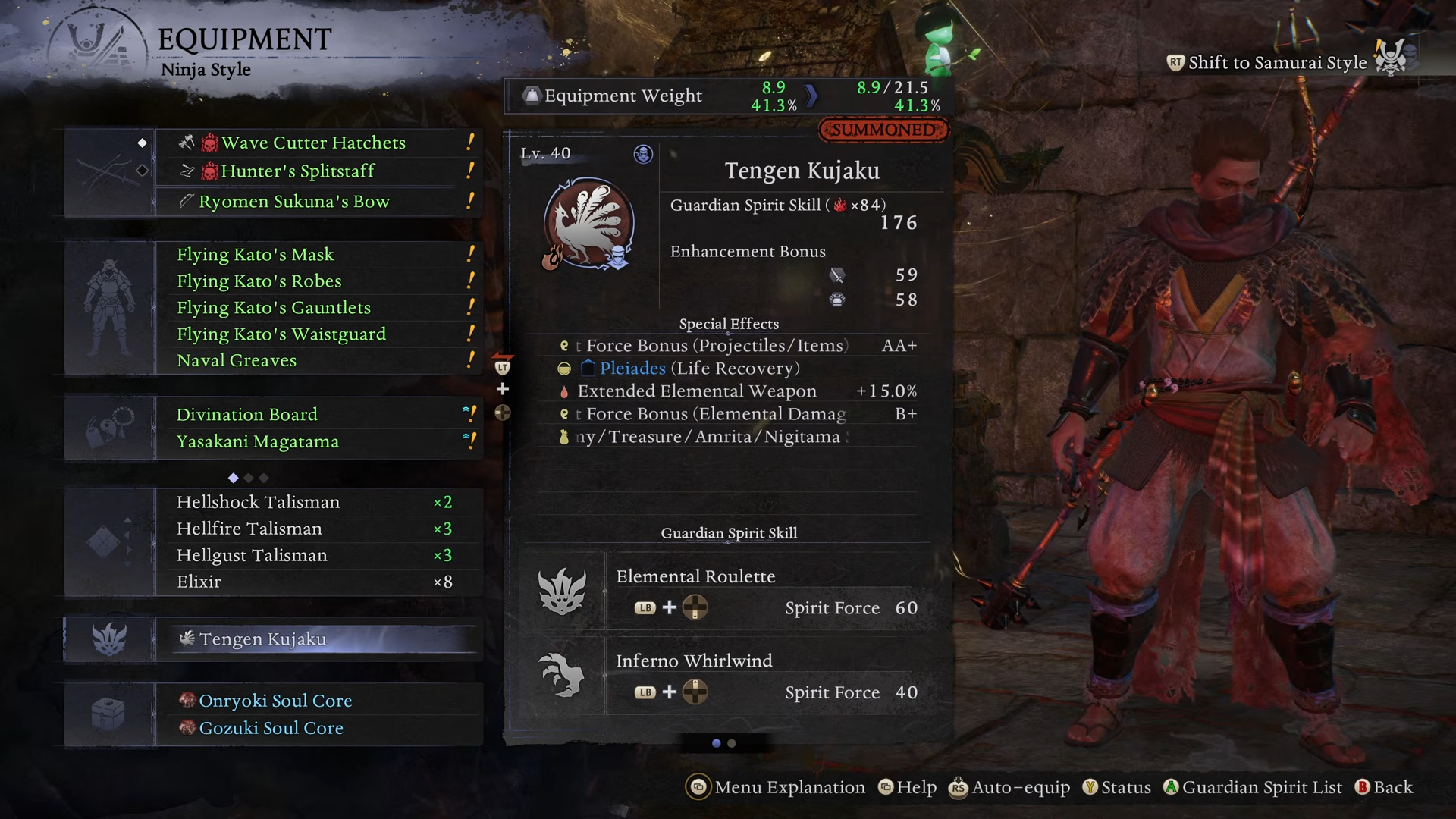 | Guardian Spirits | Kusanagi (Samurai); Tangen Kujaku (Ninja, with Elemental Roulette) |