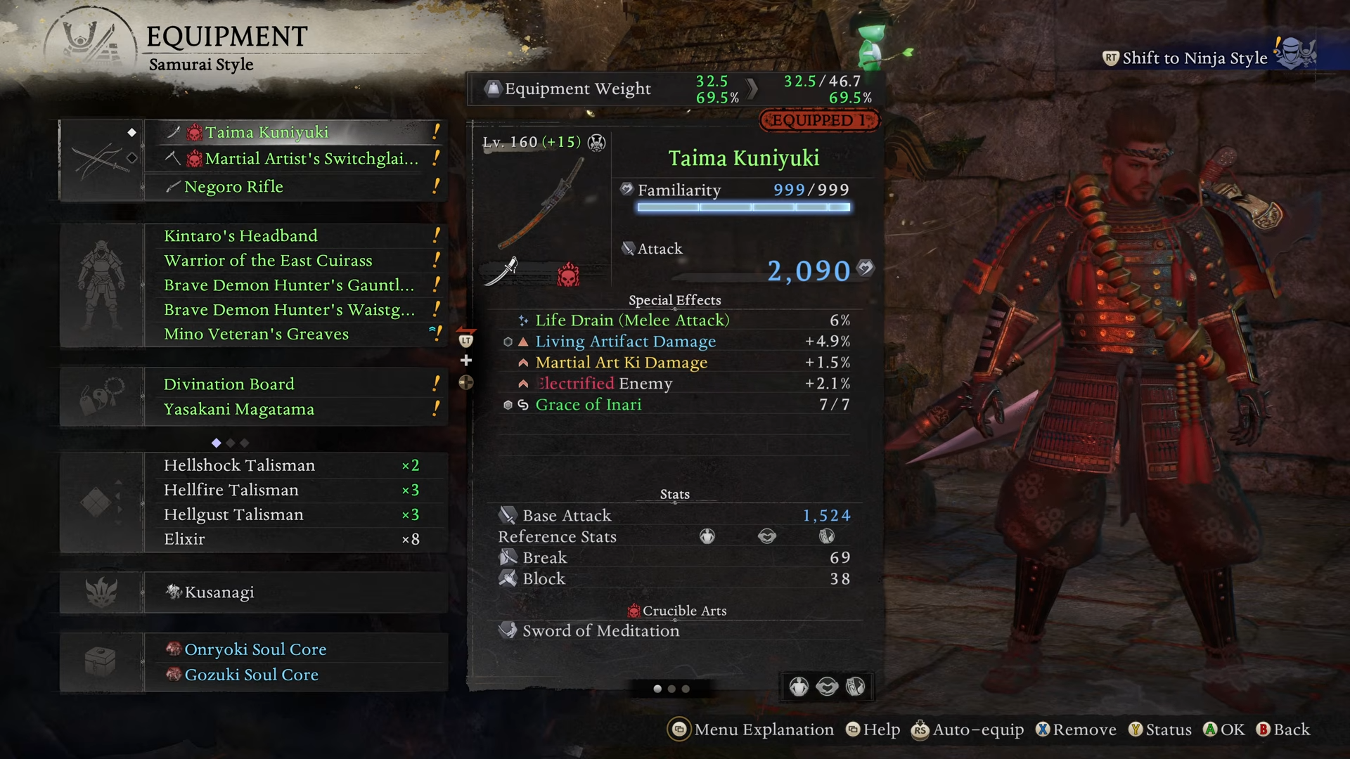 | Proficiency Boost | Kusanagi / Sword of Meditation | Massive arts damage scaling |