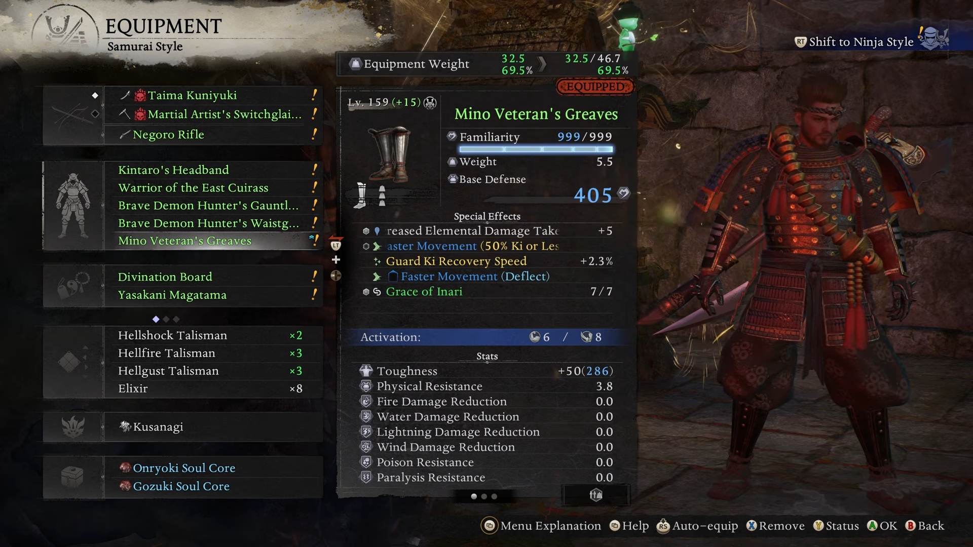Grind Inari Mino Veterans boots via Sudama blessing for 50 toughness into A rank.