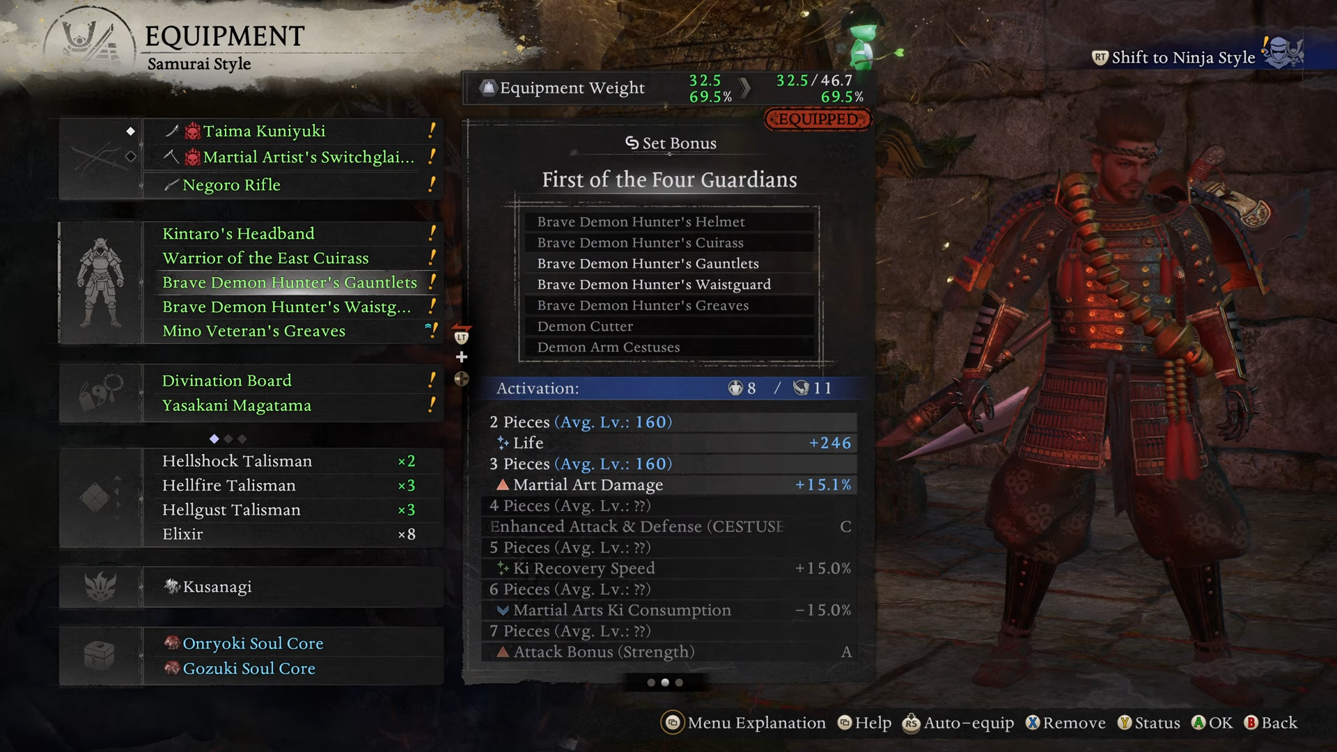 Brave Demon waist and gauntlets (15% martial arts damage)…