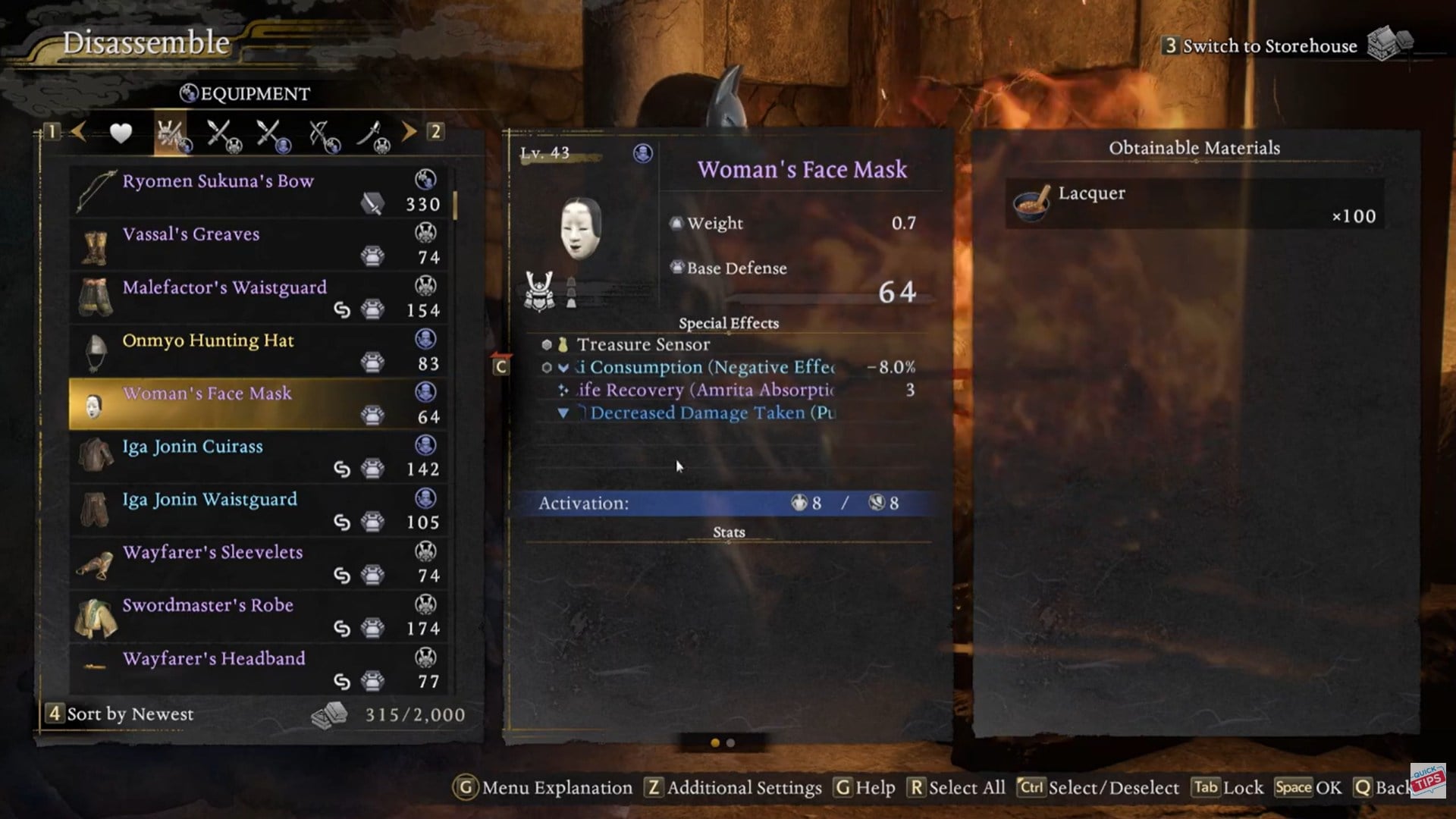 Nioh 3 Lacquer Farming Guide: How to Disassemble Low Tier Items to Get Lacquer