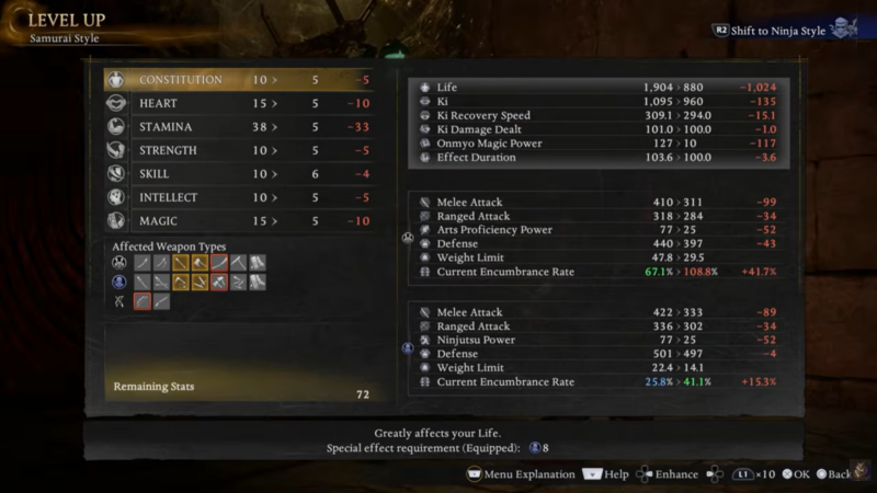 Nioh 3 Stat scaling transition