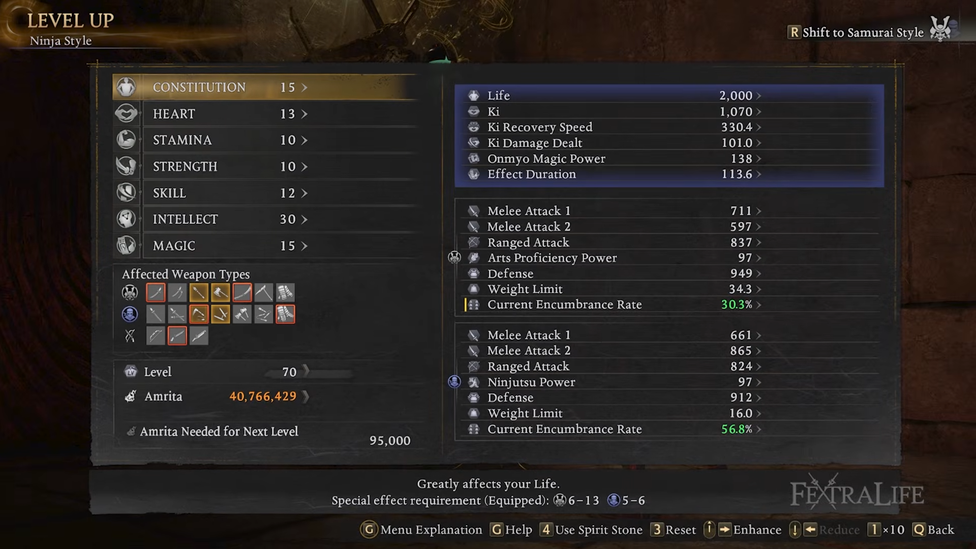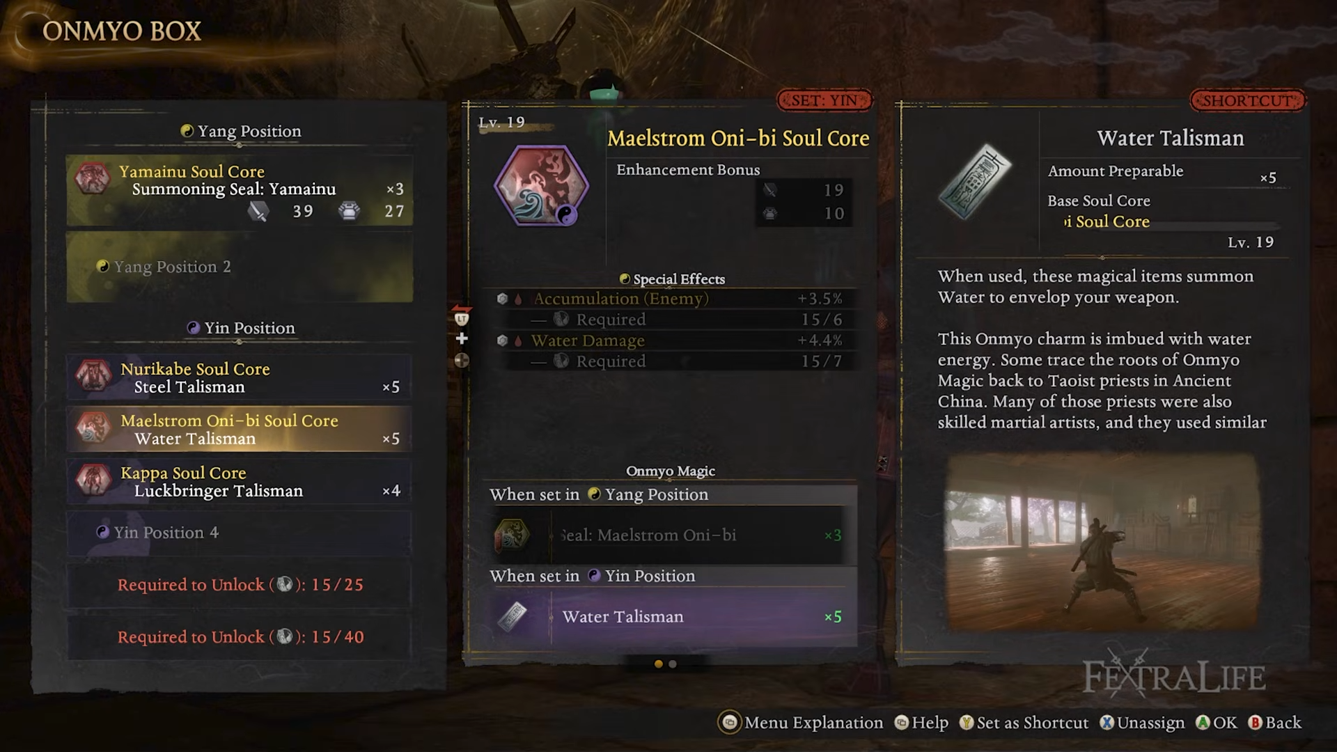 - You push damage by applying multiple ailments (via talismans and shuriken) to trigger Confused for bigger damage and slower enemy ki recovery.