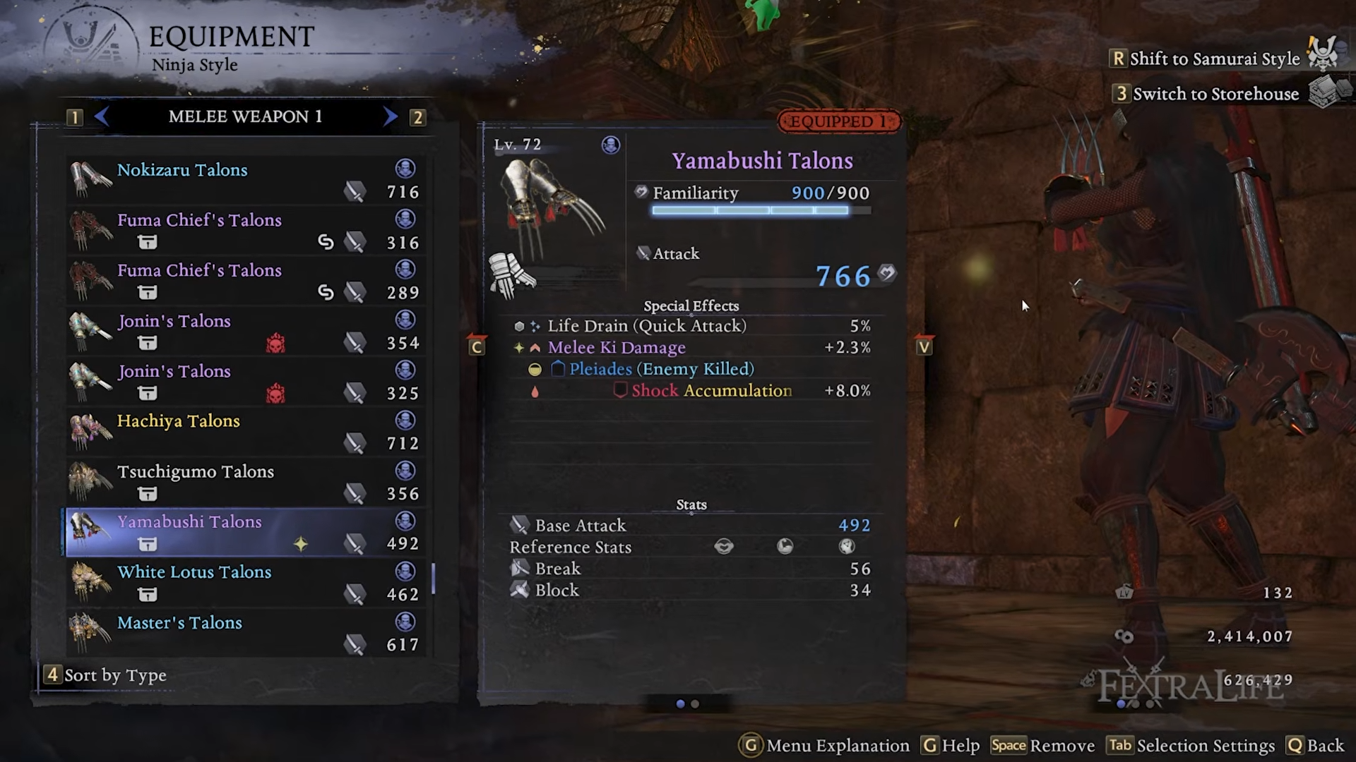 On the Samurai side, the weapon choice isn’t central; any weapon type that scales with Magic (like Sword or Switchglaive) works because you’re mainly style shifting for a burst break window and then returning to Ninja Style.