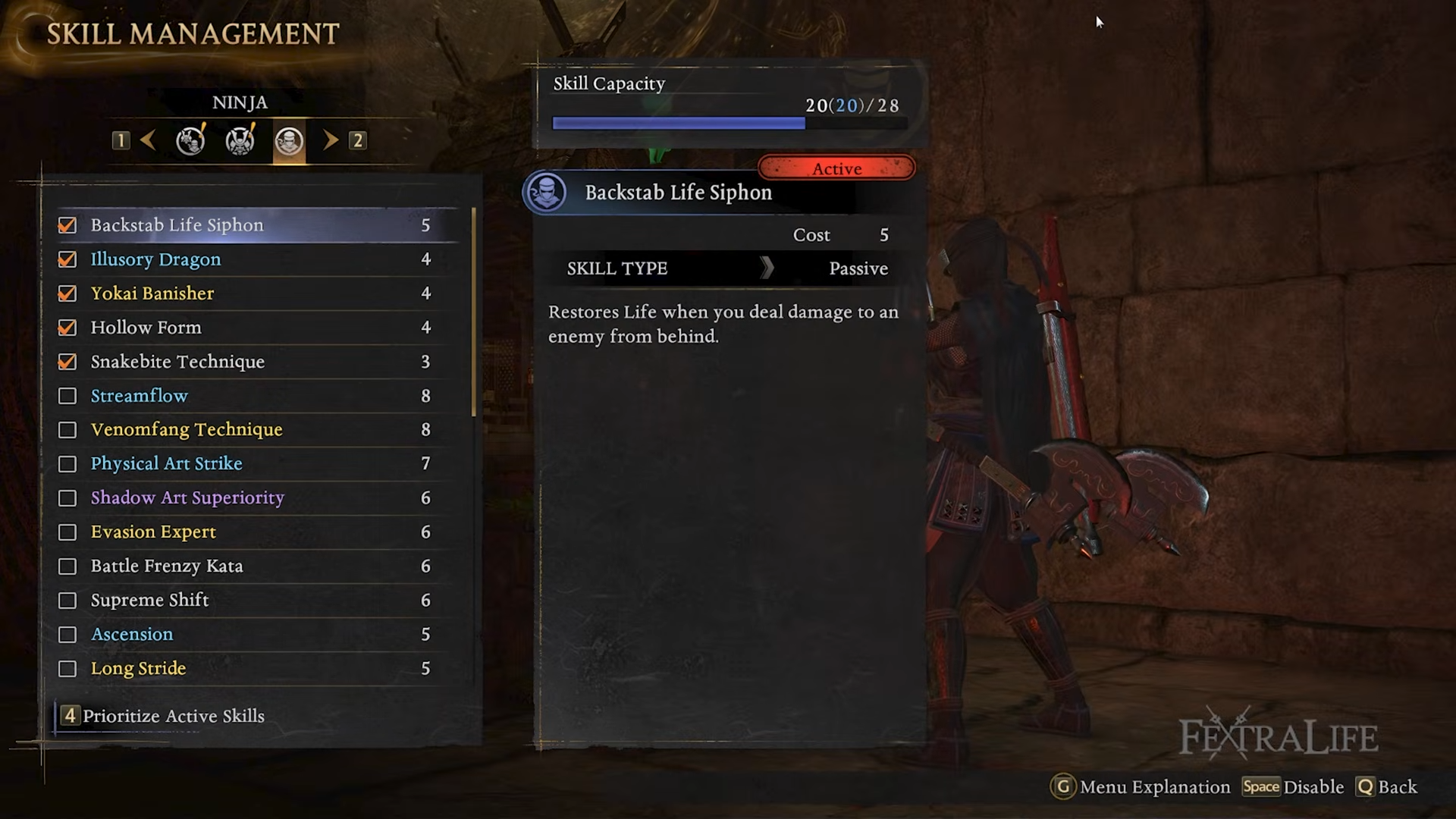This gives you life restoration when you deal damage from behind, which synergizes naturally with Ninja positioning and backstab opportunities.
