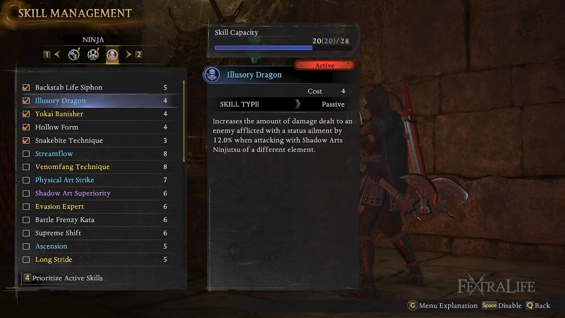 | Elucory Dragon | Ninja skill | 12% more damage vs status-afflicted enemies |