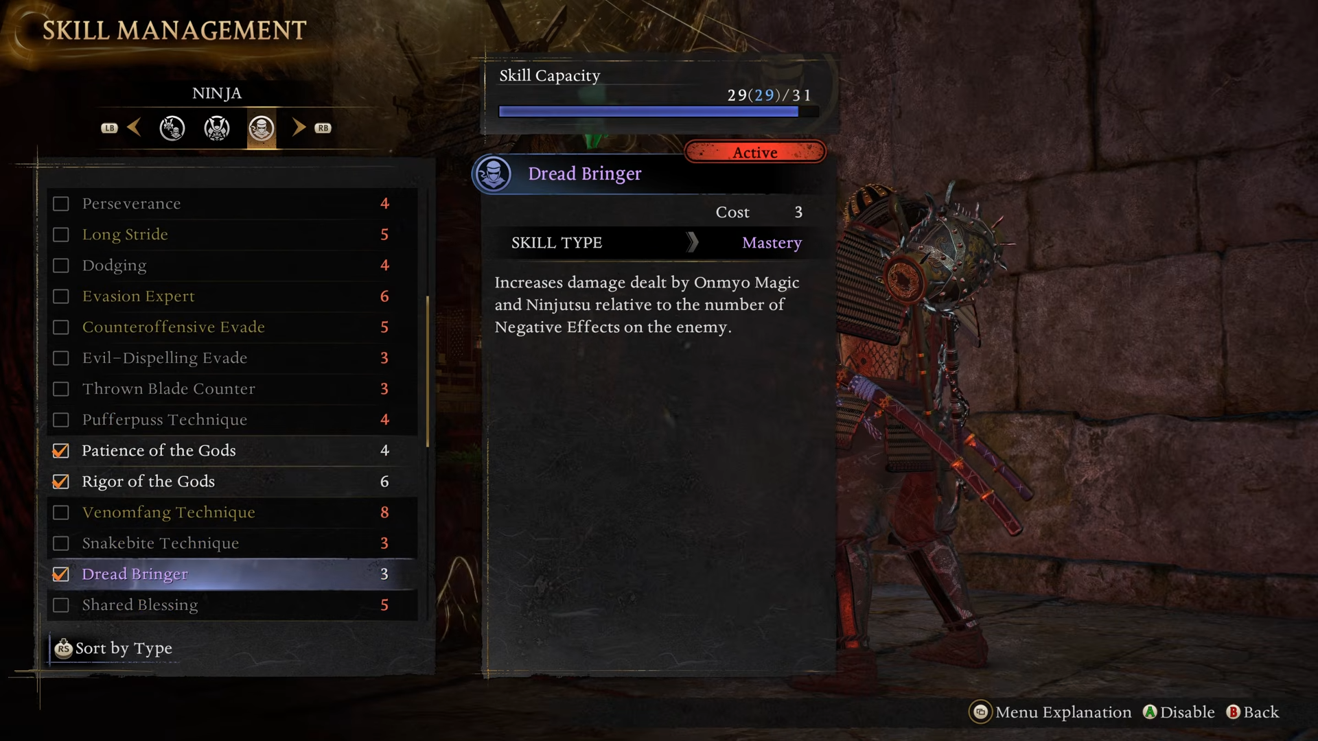 • Take Patience of Gods and Rigor of Gods to support your ninjutsu-heavy side when you swap to it.