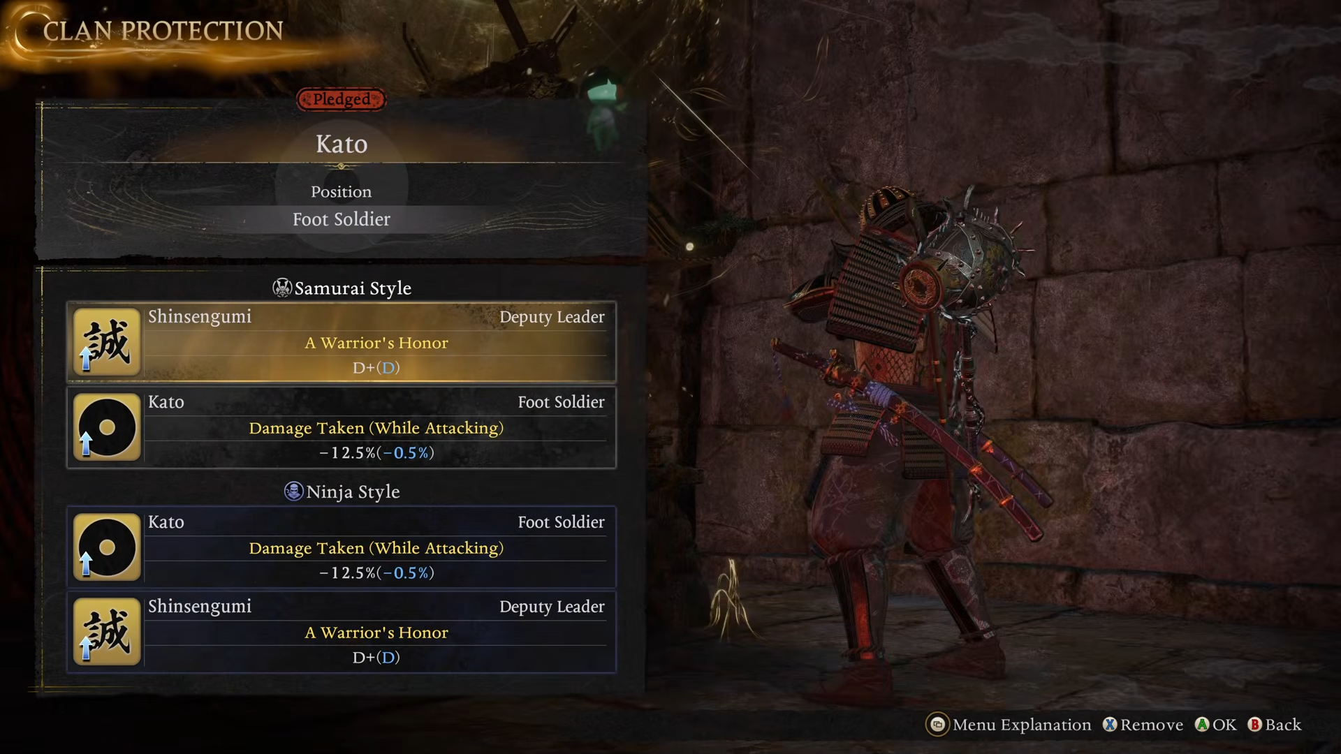 • Use Samurai’s Cloak to reduce damage taken from ranged attacks.