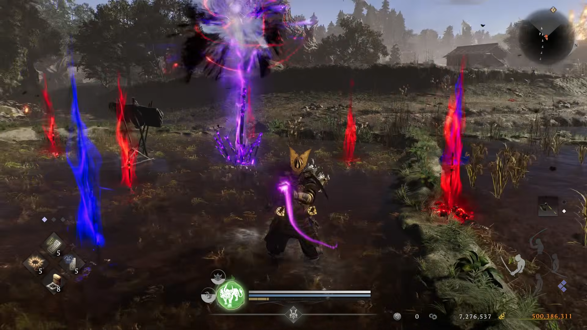 • Use your elemental axe or dual-sword skills (Bear’s Bane Fire, Titanic Strength Water, Mad Spinner Wind, Raijin Lightning, Twin Dragons Water, etc.) to apply multiple statuses.