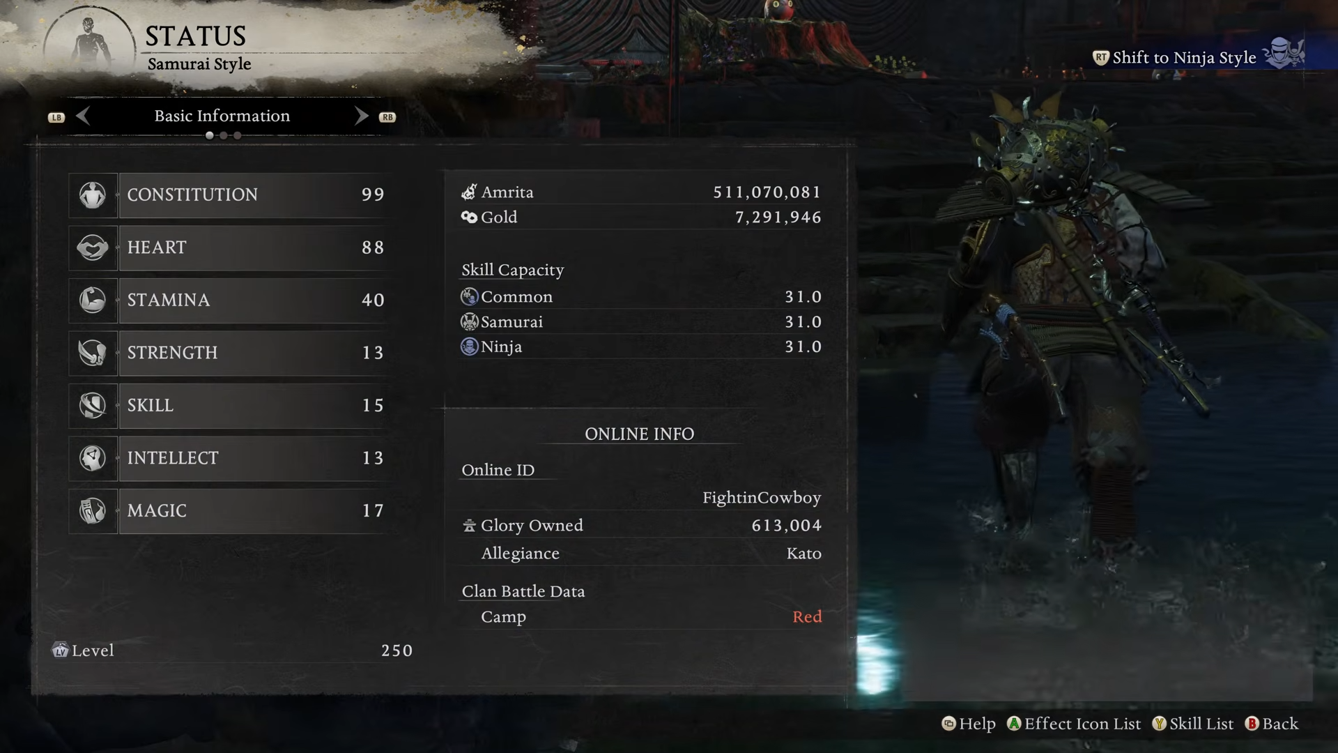 While this is fundamentally a Samurai-focused build, you keep an Anari-style ninja setup available for extra elemental application.