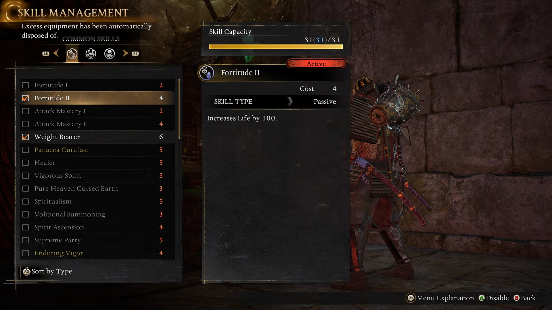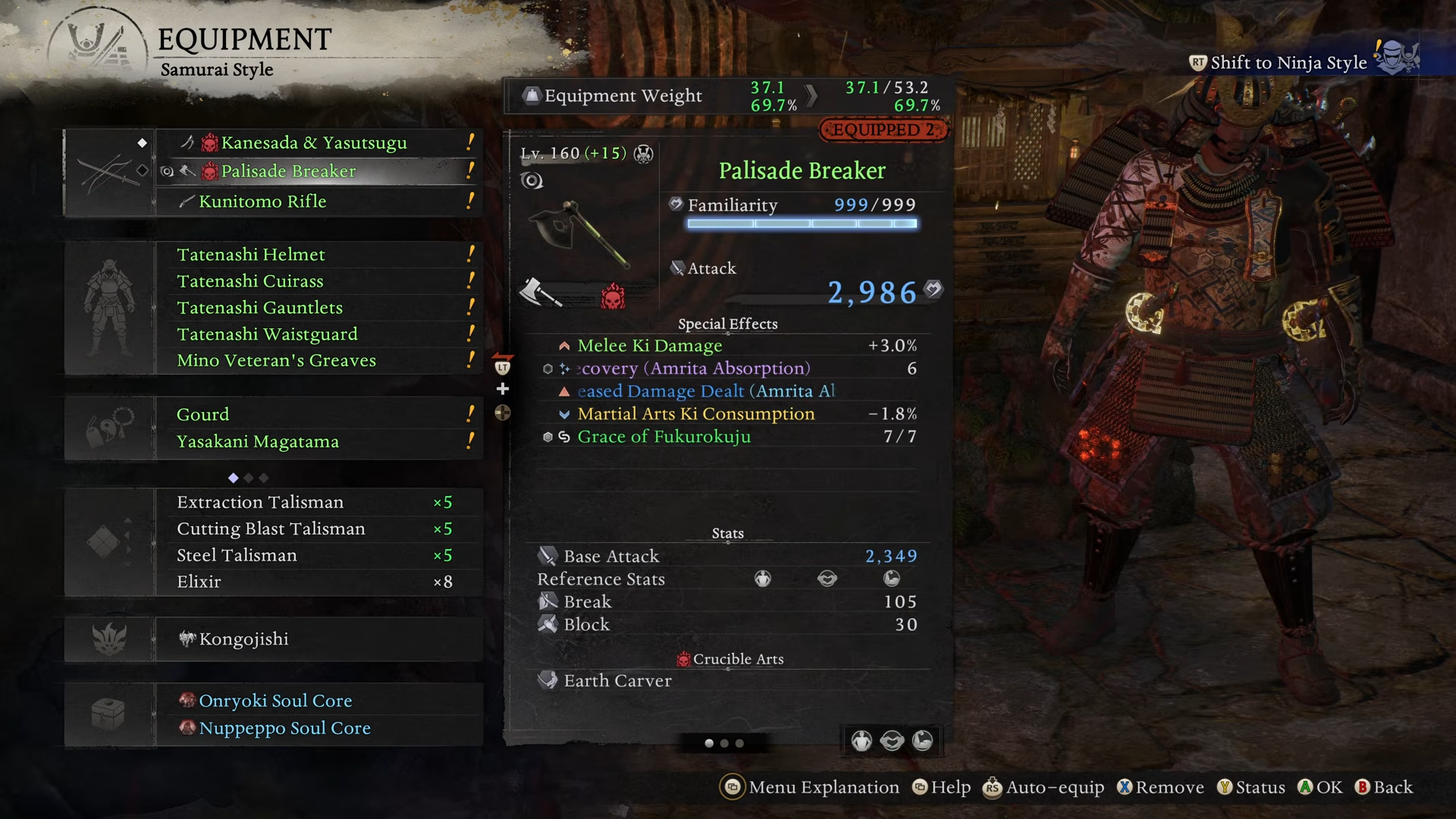 • Get Stamina to about 40 so you can equip heavy armor pieces and Tatanashi comfortably.