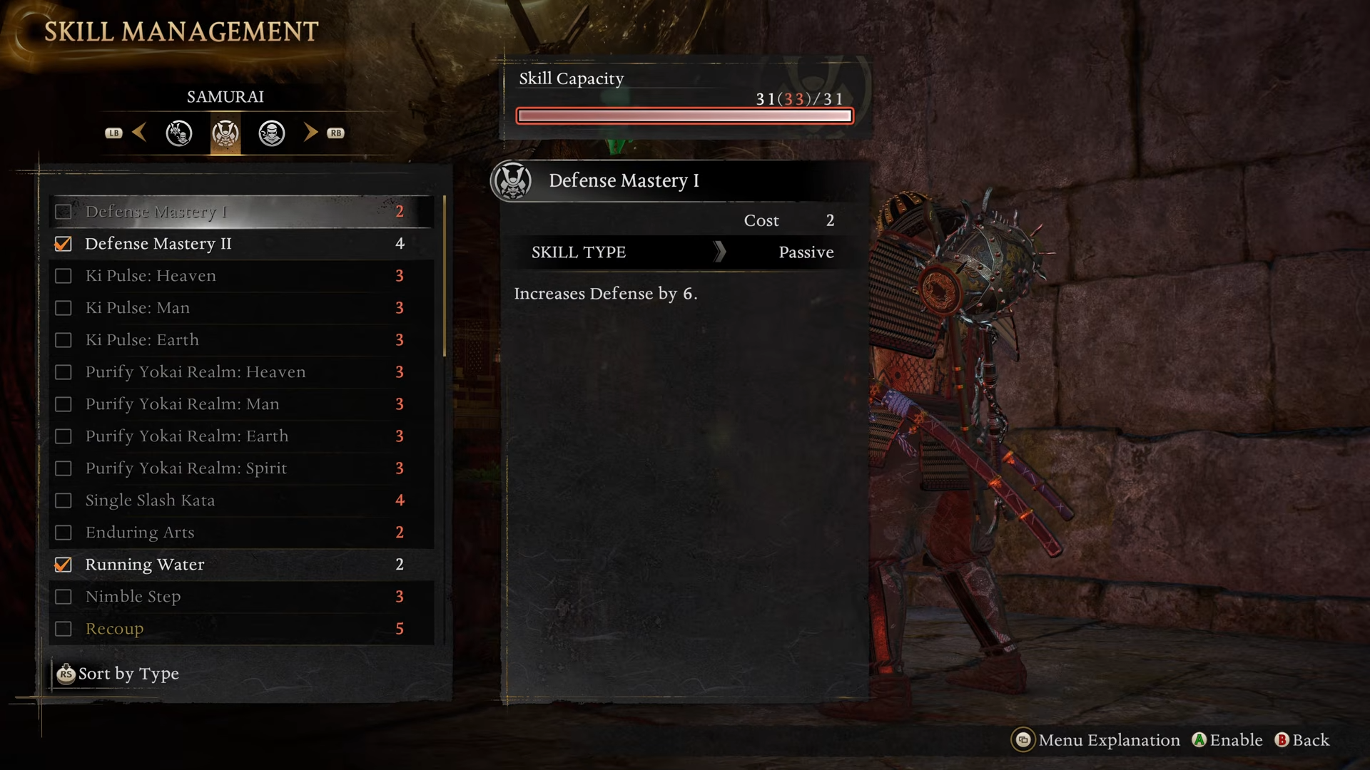 Your Samurai tree focuses on raw defense, damage reduction while attacking, and Amrita generation for healing.