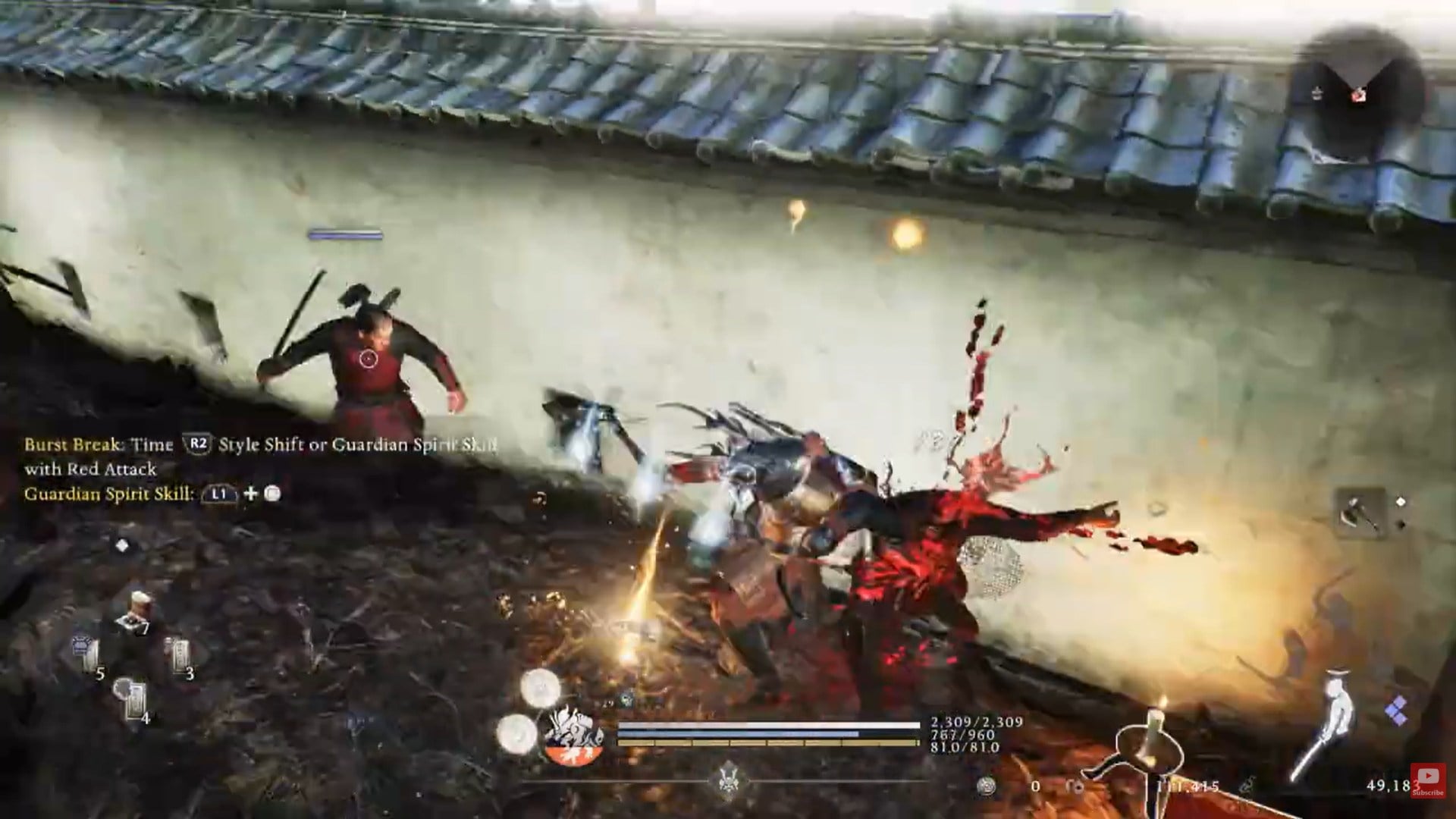 Advance through the defensive perimeter, clearing enemies along corridors and open courtyard sections. Maintain Ki discipline, as castle layouts often encourage multi-enemy engagements.