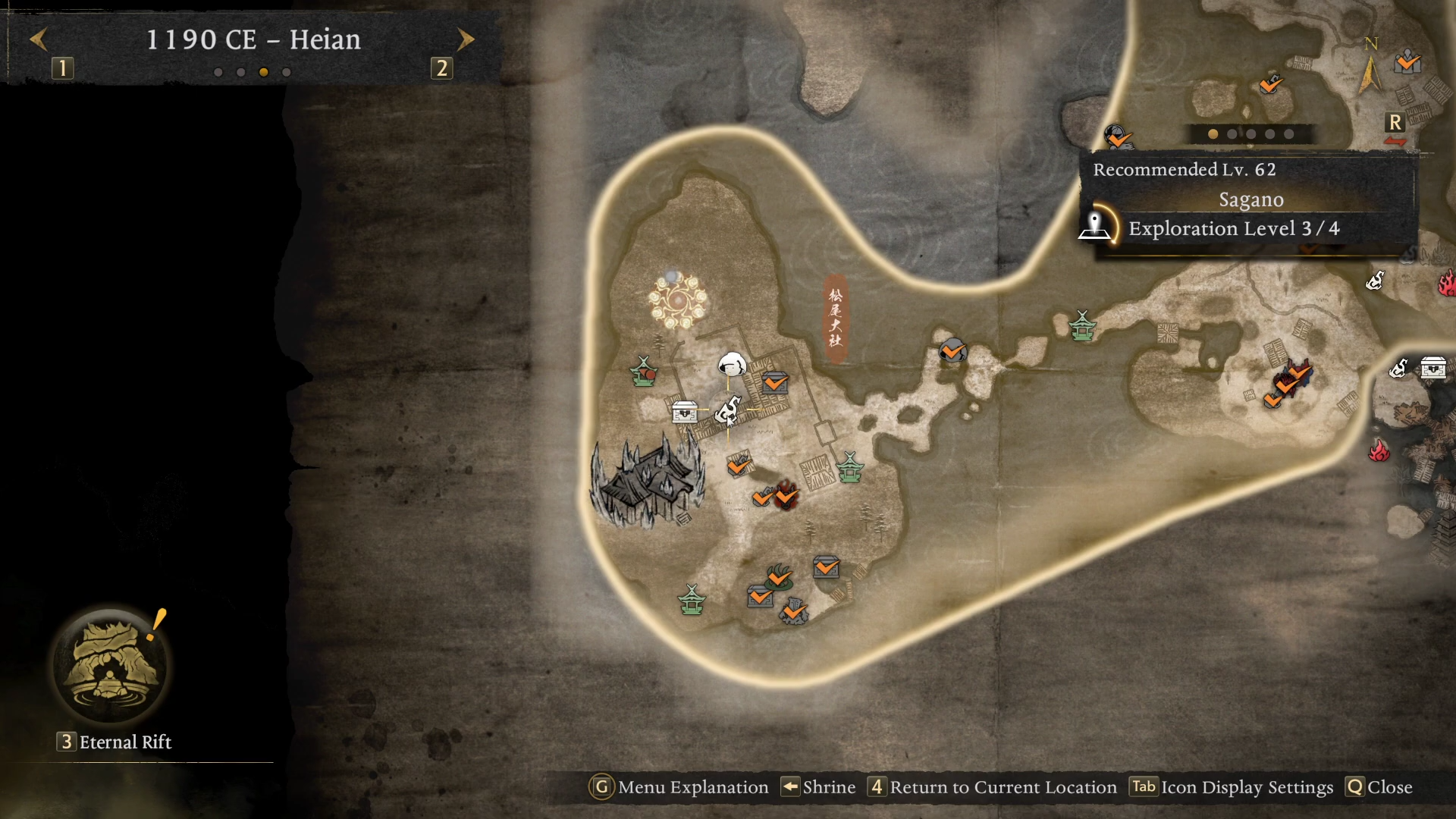 The area is filled with narrow pathways, lava flows, and corrupted shrines guarded by elemental yokai. The shrine where the spirit resides becomes accessible only after clearing certain main missions in this region.