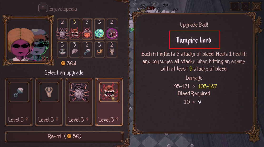 - Vampire Lord: Formed by combining a Vampire ball with either a Bleed ball or a Dark ball.