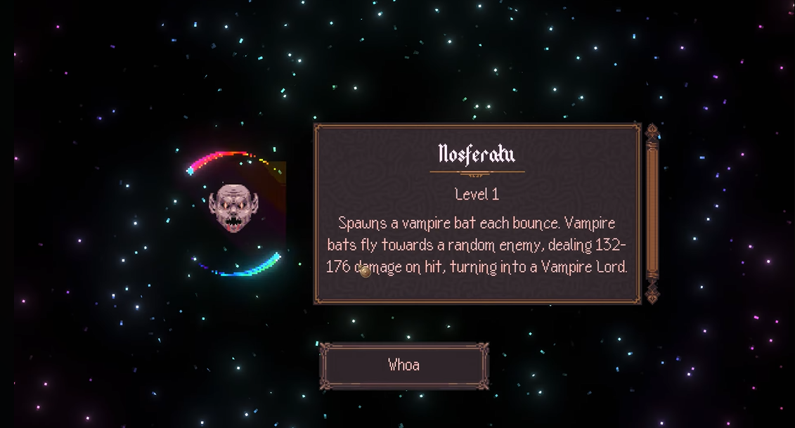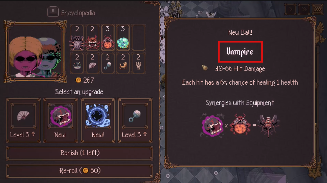 Ball x Pit's evolving system centers around upgrading special balls to level 3 before combining them through fusion. Nosferatu stands out as a legendary and late-game evolution, symbolizing mastery of the fusion mechanics due to its complexity.