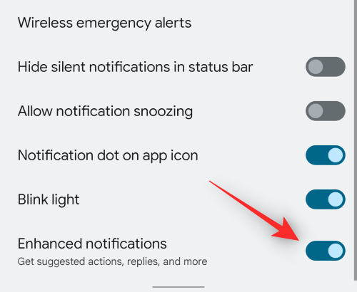 Scroll to the bottom to find Enhanced notifications. Tap and disable the toggle for the same.
