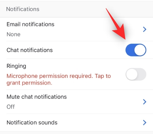 Scroll down to find the Notifications section. Now tap and enable the toggle for Chat notifications.