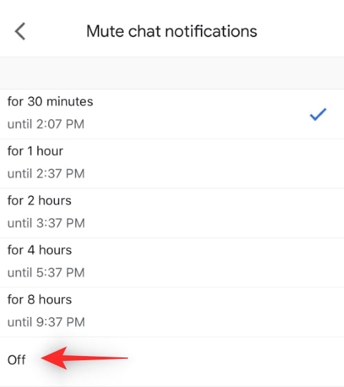Ensure it reads Off under Mute chat notifications. If not, then tap the same and select Off.