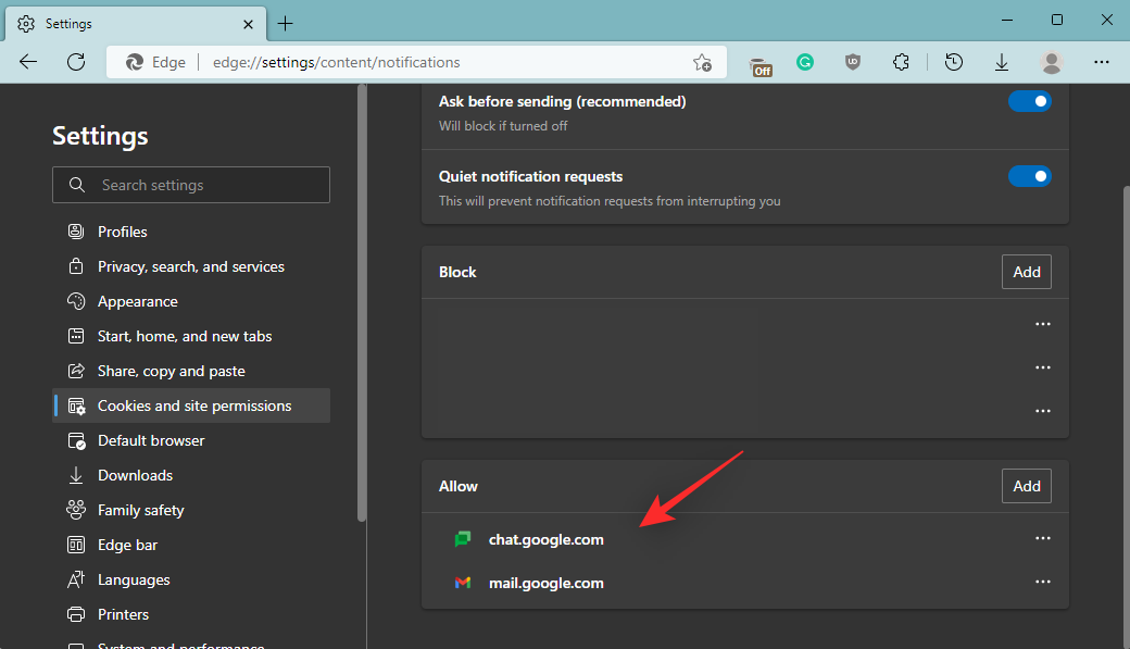 Restart Edge for good measure. Once restarted, you should now be able to receive all notifications for Google Chat whether using the web app or the website.