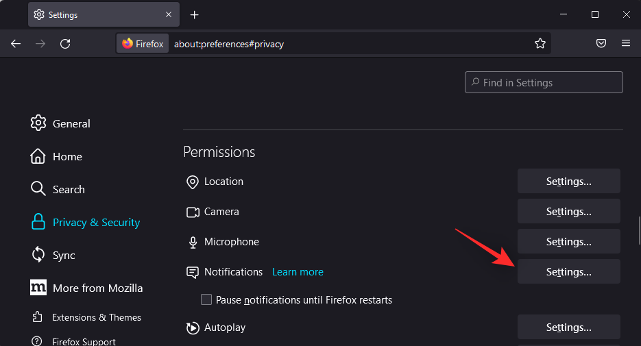 Scroll down on your right to find the Permissions section. Click Settings… beside Notifications under the same.