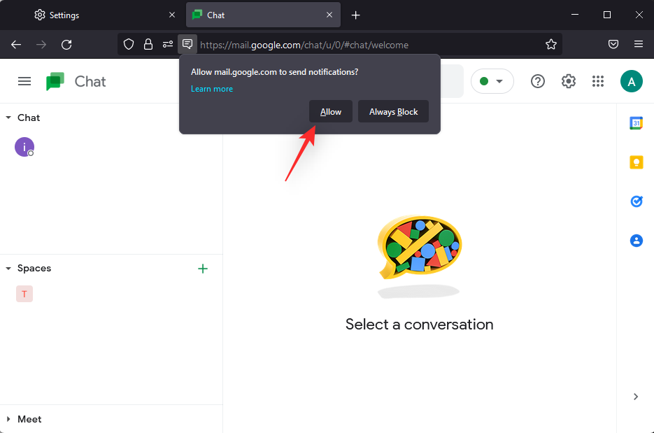 If you’re a Firefox user, then you can use the steps below to enable notifications for Google Chat. Follow the steps below to help you along with the process.