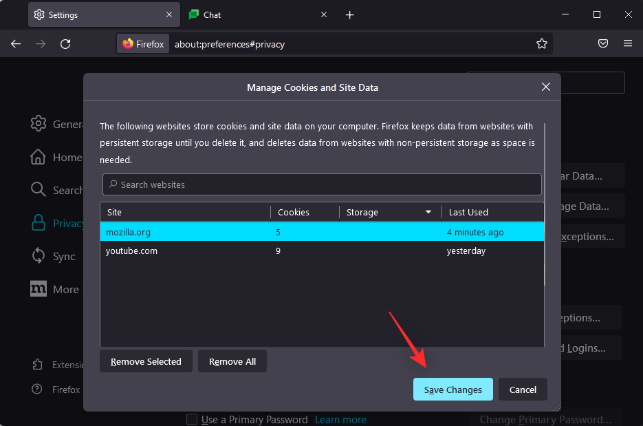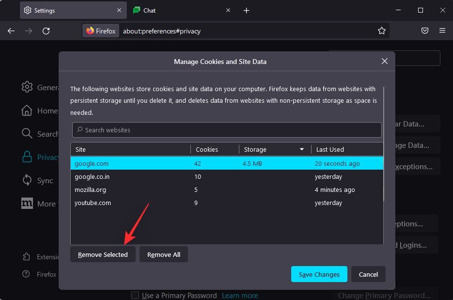 Repeat the steps above and remove any other listings that you find related to Google or Google Chat. Once removed, click Save Changes.