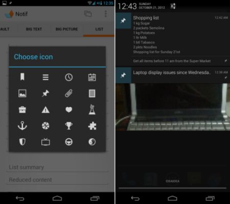 Notif is a simple, but well designed notifications app, which takes advantage of the Android 4.1 Jelly Bean’s rich notifications feature, and allows you to create custom notifications for every possible thing you can think of. You could use Notif to create notifications for reminders, lists, passwords or even for pictures.
