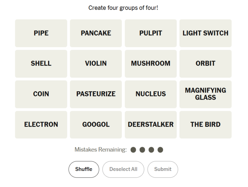 This puzzle had a balanced difficulty curve, with one or two categories standing out immediately while others required deeper thought. The mix of academic terms, everyday actions, and quirky linguistic patterns made it engaging. Solvers likely found themselves confident early on, only to slow down when the more abstract grouping revealed itself.