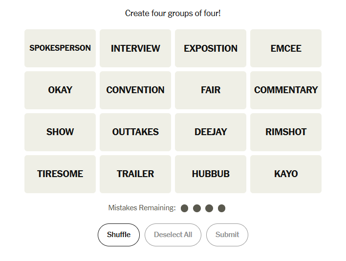 Today’s grid leaned into clear themes that only fully clicked once you stopped reading words literally. Several groups looked deceptively obvious, while one relied on recognizing how words transform when paired with familiar prefixes or contexts. Many solvers likely felt confident early, then paused briefly before everything snapped neatly into place.