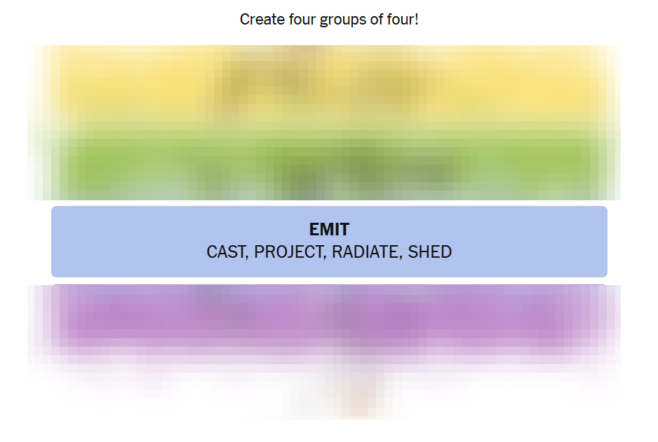- These words involve giving off or sending out something