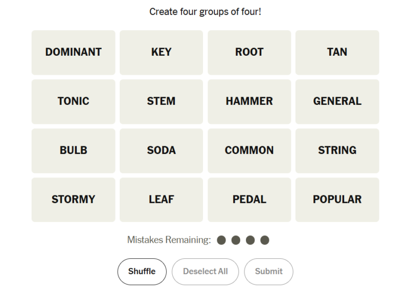 The grid for April 17 strikes a nice balance between logical categories and subtle wordplay. A couple of groups are theme-based and fairly intuitive, while others rely on recognizing shared contexts or compound phrases. Many solvers likely found themselves second-guessing early matches before the clearer patterns emerged.