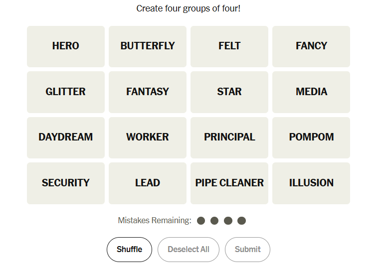 Today’s grid leaned into everyday vocabulary with subtle overlaps. Some words felt metaphorical, others literal, and a few tempted solvers into premature groupings. The puzzle rewarded stepping back and considering how a single word can shift meaning depending on context.