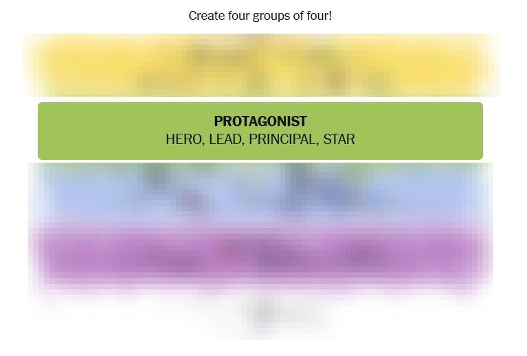 - Refers to the central figure in a story or situation