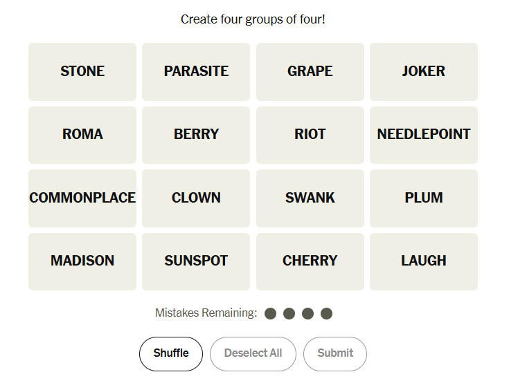 NYT Connections Hints: November 18
