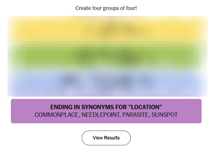 This puzzle balanced pop-culture recognition with neat morphological tricks — not overly fiendish, but satisfying if you noticed surname winners and common place-endings. Quick strategy tip: scan first for obvious proper names and short suffixes (spot/point/site/place) to lock in easy groups.