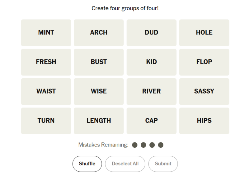 The New York Times Connections puzzle challenges players to sort 16 seemingly unrelated words into four connected groups. Each group shares a hidden link. Today’s grid blends physical actions, clever rearrangements, and nostalgic references, making it both playful and slightly deceptive. Below you’ll find gentle hints to guide your thinking, followed by the complete solutions once you’re ready to check your work.