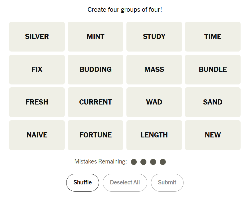 Today’s Connections puzzle leans heavily into verb-based thinking and lateral associations. Some groupings feel intuitive, while others rely on spotting patterns beyond surface meanings. The anagram set is especially tempting early on, while the final category rewards solvers who recall classic childhood games.