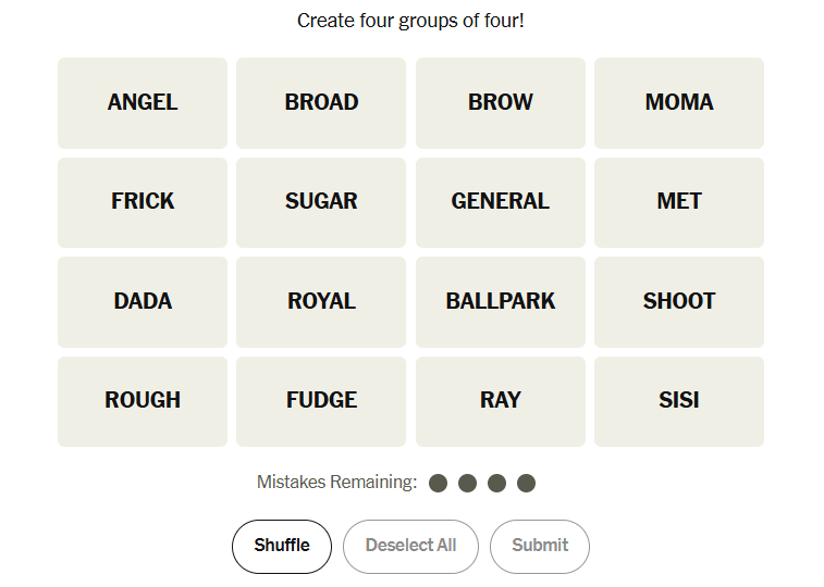 The New York Times Connections game presents 16 words that sort into four groups of four. On 2 December 2025, the grid mixed literal pairings, family-nickname patterns, tame expletives, and a sports-themed set. Below you’ll find gentle hints for each category followed by the full grouped answers.